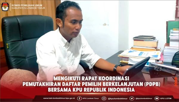 Komisi Pemilihan Umum (KPU) Kabupaten Lombok Timur mengikuti Rapat Koordinasi Pemutakhiran Daftar Pemilih Berkelanjutan (PDPB) yang dilaksanakan oleh KPU Republik Indonesia secara daring pada Selasa, 9 September 2025. Kegiatan ini bertujuan untuk memperkuat koordinasi antar KPU provinsi dan kabupaten/kota guna memastikan keakuratan data pemilih secara berkesinambungan menjelang pemilu dan pemilihan mendatang.