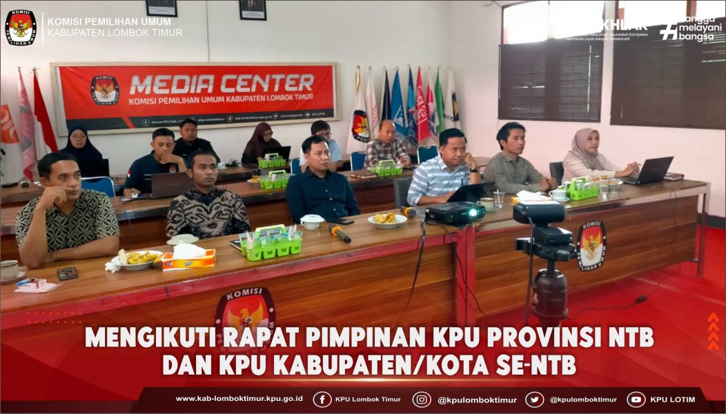 Komisi Pemilihan Umum (KPU) Kabupaten Lombok Timur melaksanakan mengikuti Rapat Pimpinan KPU Provinsi Nusa Tenggara Barat dan KPU Kabupaten/Kota se-NTB pada Selasa (16/9/2025).