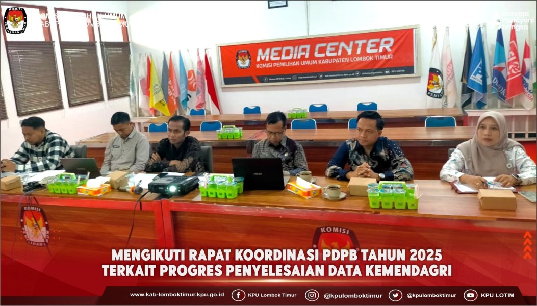 Komisi Pemilihan Umum (KPU) Kabupaten Lombok Timur mengikuti rapat koordinasi dalam rangka proses Pemutakhiran Data Pemilih Berkelanjutan (PDPB) tahun 2025, khususnya terkait progres tindak lanjut penyelesaian data Kementerian Dalam Negeri (Kemendagri), pada Kamis (18/9/2025).