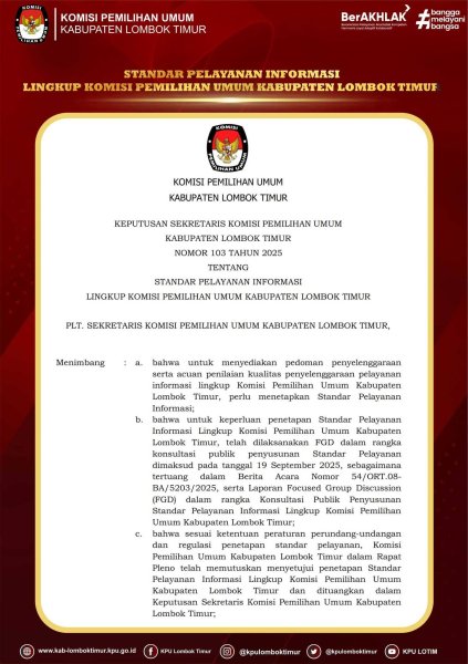Standar Pelayanan Informasi Komisi Pemilihan Umum Kabupaten Lombok Timur