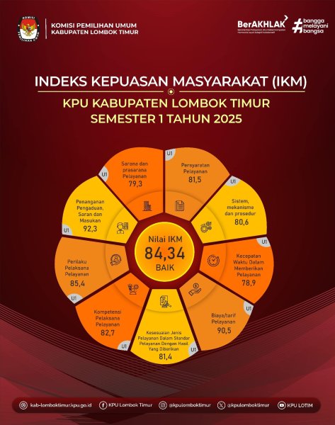 Berikut Indeks Kepuasan Masyarakat Semester 1 tahun 2025 di KPU Kabupaten Lombok Timur.