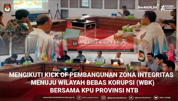 Komisi Pemilihan Umum (KPU) Kabupaten Lombok Timur mengikuti kegiatan Kick Off Pembangunan Wilayah Zona Integritas yang diselenggarakan oleh KPU Provinsi Nusa Tenggara Barat (NTB) secara daring pada Selasa 23 September 2025.