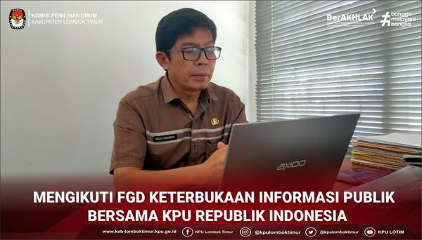 Komisi Pemilihan Umum (KPU) Kabupaten Lombok Timur mengikuti kegiatan Focus Group Discussion (FGD) terkait keterbukaan informasi publik yang diselenggarakan oleh KPU Republik Indonesia secara daring, Selasa 23 September 2025.