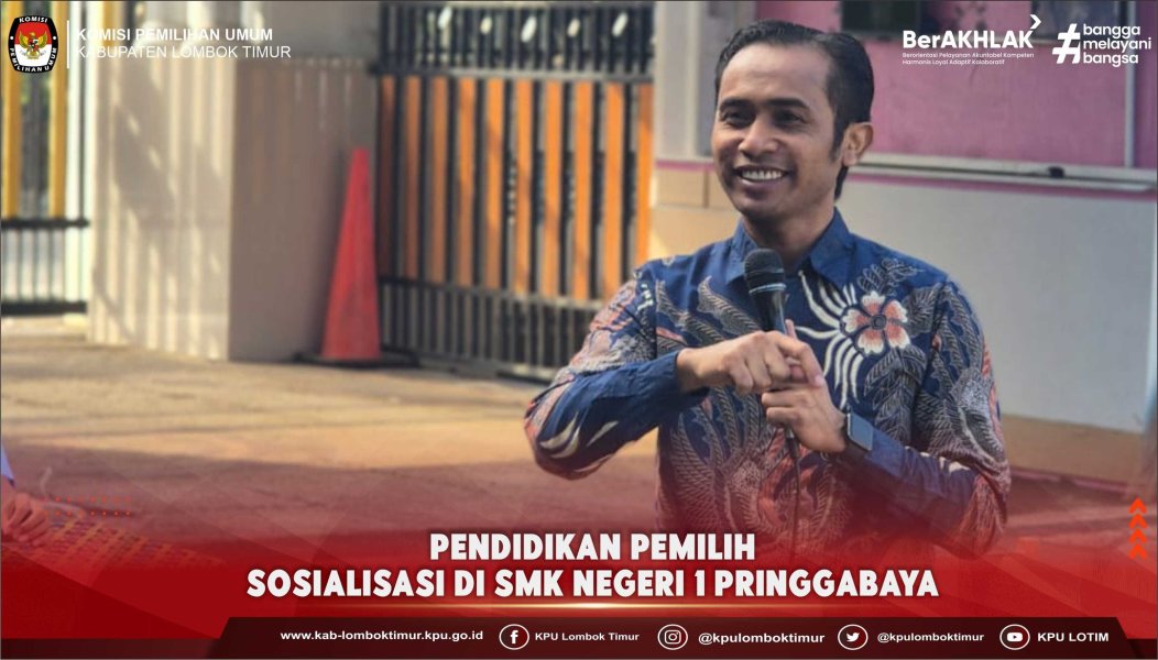 Komisi Pemilihan Umum (KPU) Kabupaten Lombok Timur melaksanakan kegiatan Pendidikan Pemilih melalui sosialisasi di SMK Negeri 1 Pringgabaya, Pada Kamis 25 September 2025.