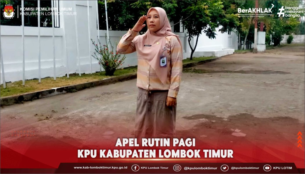 Komisi Pemilihan Umum (KPU) Kabupaten Lombok Timur melaksanakan apel rutin pagi pada Senin, 29 September 2025. Kegiatan yang berlangsung di halaman kantor KPU Lombok Timur ini dipimpin oleh Plt. Sekretaris KPU Kabupaten Lombok Timur Sri Sartika, S.Sos., M.Ak sebagai pembina apel.