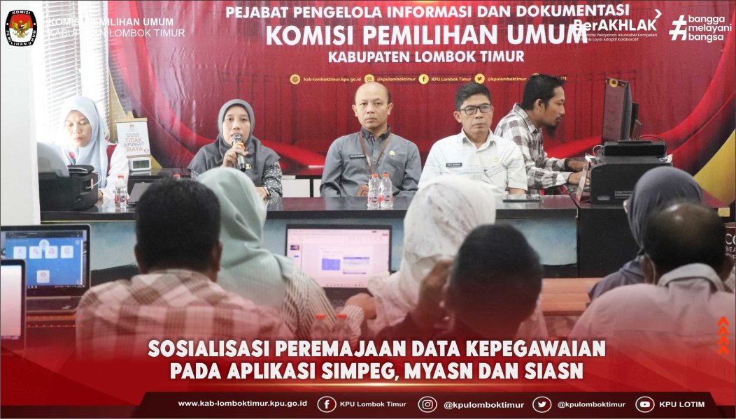 KPU Kabupaten Lombok Timur melaksanakan kegiatan sosialisasi terkait peremajaan data kepegawaian pada aplikasi SIMPEG, MyASN, dan SIASN