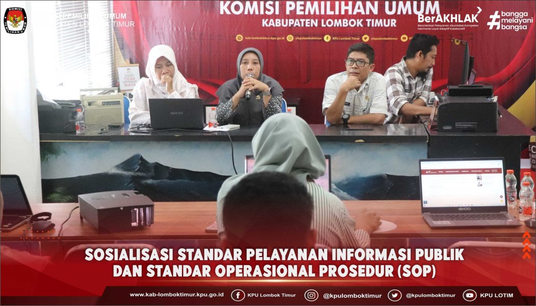 Komisi Pemilihan Umum Kabupaten Lombok Timur menyelenggarakan kegiatan sosialisasi terkait Standar Pelayanan Informasi Publik serta Standar Operasional Prosedur (SOP) di lingkungan KPU Kabupa