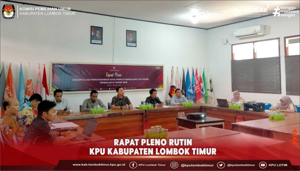 Komisi Pemilihan Umum (KPU) Kabupaten Lombok Timur melaksanakan kegiatan Rapat Pleno Rutin KPU Kabupaten Lombok Timur, Pada Kamis 2 Oktober 2025.
