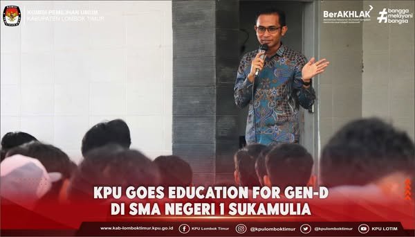 Komisi Pemilihan Umum (KPU) Kabupaten Lombok Timur melaksanakan kegiatan KPU Goes Education for Gen-D di SMA Negeri 1 Sukamulia, Senin 13 Oktober 2025.