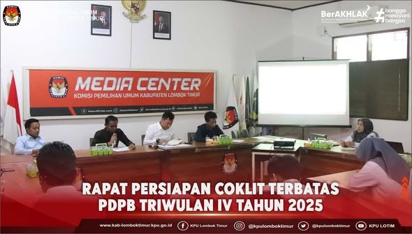 Komisi Pemilihan Umum (KPU) Kabupaten Lombok Timur melaksanakan rapat persiapan Coklit Terbatas PDPB Triwulan IV tahun 2025, Senin 27 Oktober 2025.
