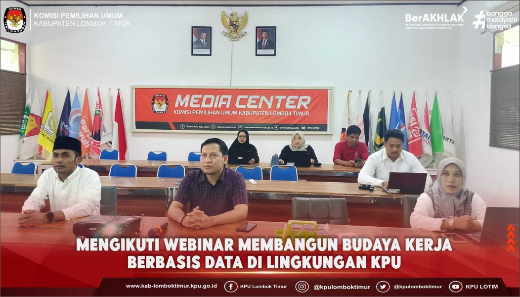 Komisi Pemilihan Umum (KPU) Kabupaten Lombok Timur mengikuti kegiatan Webinar Membangun Budaya Kerja Berbasis Data di Lingkungan KPU yang diselenggarakan oleh KPU Republik Indonesia secara daring, Jumat 14 November 2025.