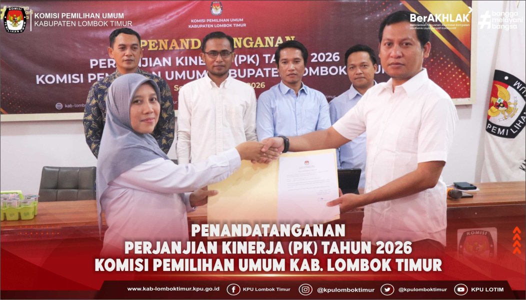 Komisi Pemilihan Umum Kabupaten Lombok Timur melaksanakan kegiatan penandatanganan Perjanjian Kinerja (PK) tahun 2026