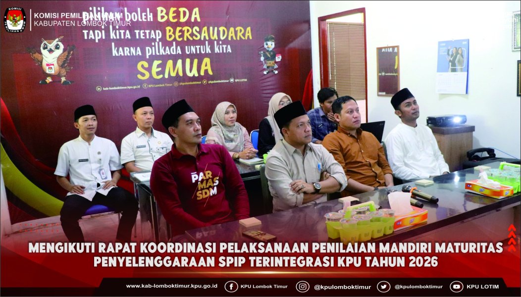 Komisi Pemilihan Umum (KPU) Kabupaten Lombok Timur mengikuti Rapat Koordinasi Pelaksanaan Penilaian Mandiri Maturitas Penyelenggaraan Sistem Pengendalian Intern Pemerintah (SPIP) Terintegrasi KPU Tahun 2026 yang diselenggarakan oleh KPU Republik Indonesia secara daring, Jumat 30 Januari 2026.