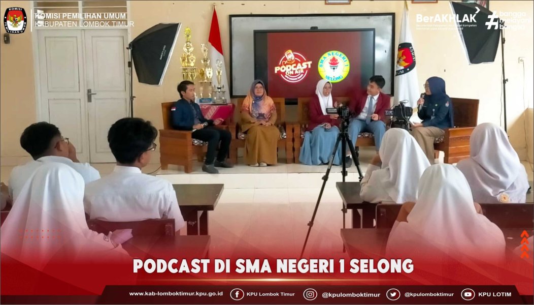 Komisi Pemilihan Umum (KPU) Kabupaten Lombok Timur melaksanakan kegiatan KPU Goes Education for Gen-D melalui kegiatan podcast yang digelar di SMA Negeri 1 Selong pada Selasa, 10 Februari 2026.