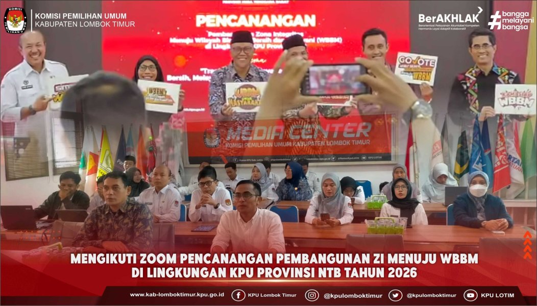 Komisi Pemilihan Umum (KPU) Kabupaten Lombok Timur mengikuti zoom pencanganan Pembangunan ZI menuju WBBM di lingkungan KPU Provinsi NTB tahun 2026, Pada Kamis 12 Februari 2026.