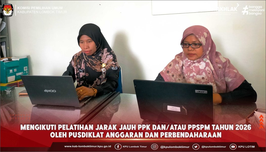 Komisi Pemilihan Umum (KPU) Kabupaten Lombok Timur mengikuti kegiatan Pelatihan Jarak Jauh Pejabat Pembuat Komitmen (PPK) dan/atau Pejabat Penandatangan Surat Perintah Membayar (PPSPM) dalam rangka Program Pembelajaran bagi Kementerian/Lembaga/Satuan Kerja Perangkat Daerah serta institusi lainnya Tahun 2026, Rabu 18 Februari 2026.