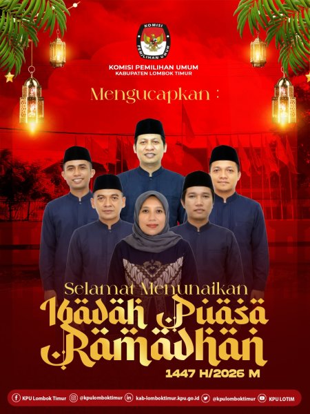 Segenap Keluarga Besar KPU Kabupaten Lombok Timur mengucapkan Selamat Menunaikan Ibadah Puasa Ramadhan 1447H/2026 M.