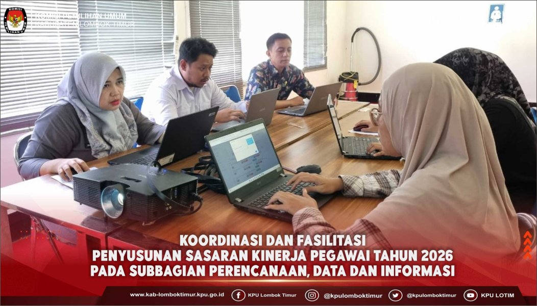 Komisi Pemilihan Umum (KPU) Kabupaten Lombok Timur melaksanakan kegiatan Koordinasi dan Fasilitasi penyusunan sasaran kinerja pegawai tahun 2026 pada subbagian perencanaan, Data, dan Informasi, Kamis 19 Februari 2026.