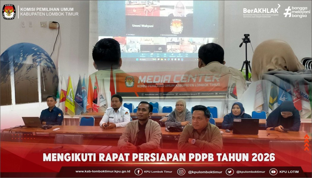 Komisi Pemilihan Umum (KPU) Kabupaten Lombok Timur mengikuti rapat persiapan Pemutakhiran Data Pemilih Berkelanjutan (PDPB) Tahun 2026 yang diselenggarakan oleh KPU RI secara daring, Selasa 24 Februari 2026.