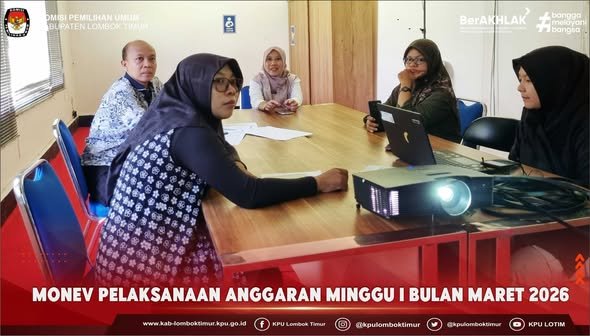 Komisi Pemilihan Umum (KPU) Kabupaten Lombok Timur melaksanakan kegiatan Monitoring dan Evaluasi (Monev) pelaksanaan anggaran Minggu I Bulan Maret Tahun 2026.