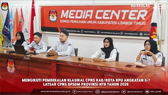 CPNS Sekretariat KPU Kabupaten Lombok Timur mengikuti kegiatan Pembekalan Klasikal CPNS Kabupaten/Kota KPU Angkatan 5–7 dalam rangka Pelatihan Dasar (Latsar) CPNS yang diselenggarakan oleh BPSDM Provinsi Nusa Tenggara Barat Tahun 2026, Jumat 6 Maret 2026.