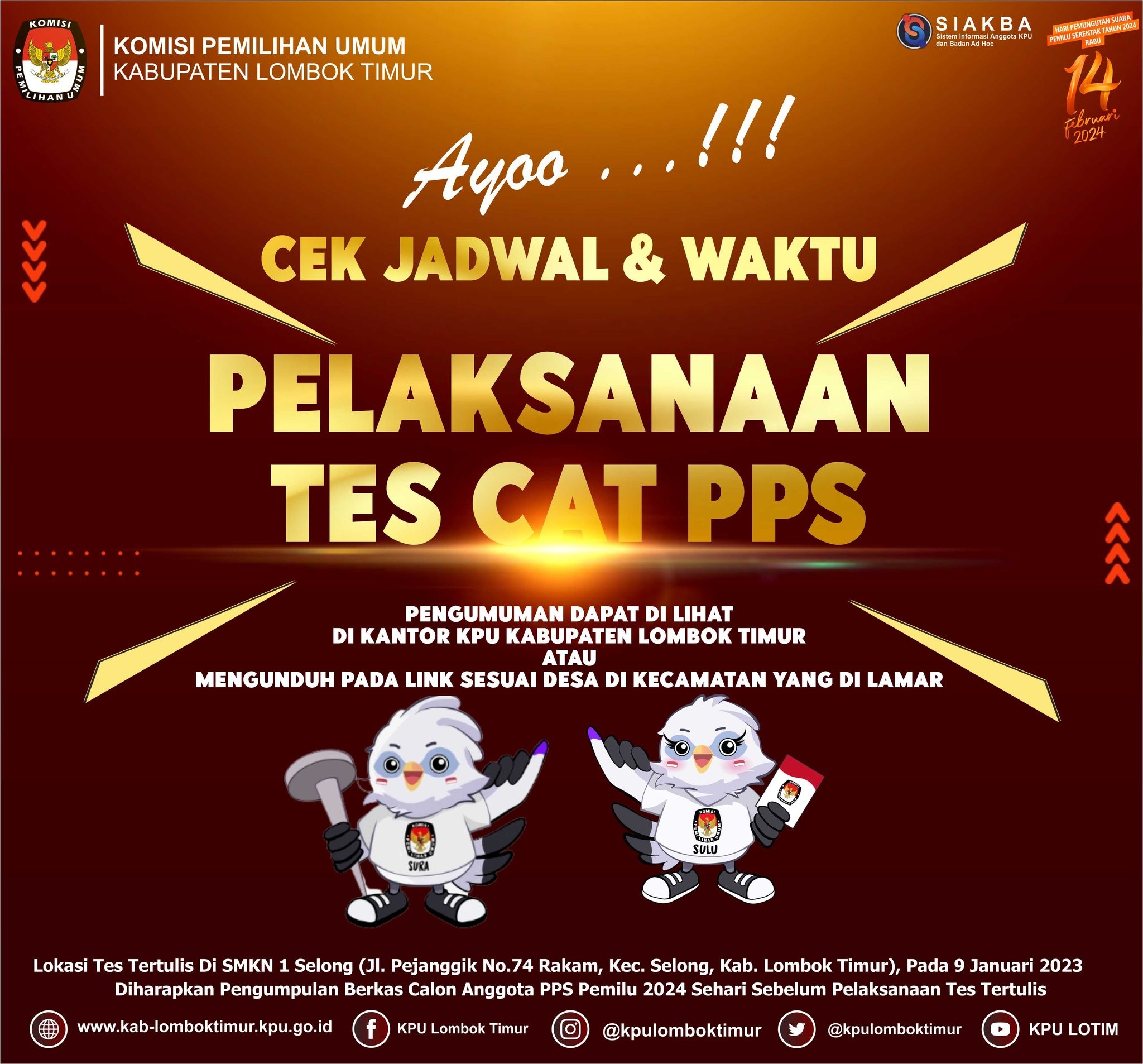 Berikut Kami Informasikan Jadwal dan Waktu Pelaksanaan Seleksi Tertulis Berbasis Komputer untuk Calon PPS pada Pemilu tahun 2024 Tingkat Kabupaten Lombok Timur.