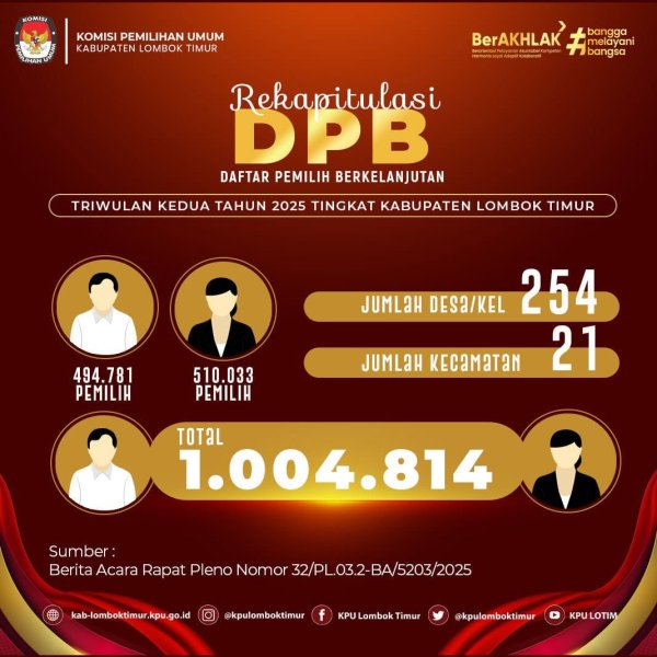 Berikut Rekapitulasi Daftar Pemilih Berkelanjutan Triwulan II tahun 2025 tingkat Kabupaten Lombok Timur
