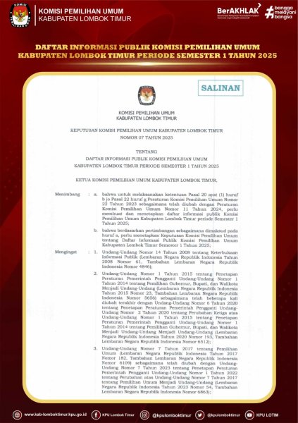 Berikut Daftar Informasi Publik Komisi Pemilihan Umum Kabupaten Lombok Timur Periode Semester I tahun 2025.