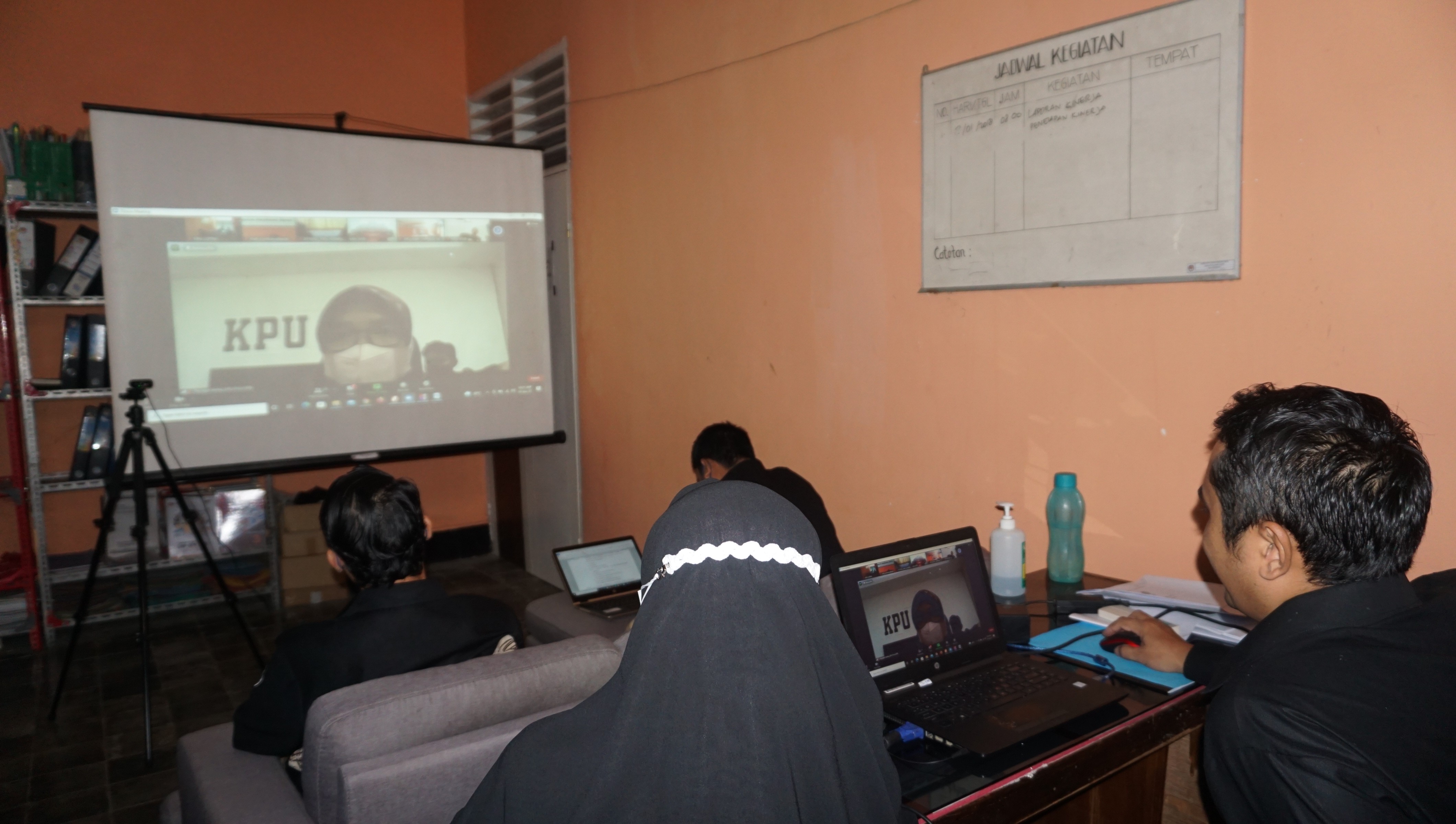 Selong, kab-lomboktimur.kpu.go.id - Sekretaris (Lalu Adyar Rosihi Aswandi,Sos) dan Kasubbag Keuangan,Umum dan Logistik (Made Candra Arissa,SE) dan Bendahara Pengeluaran, operator Saiba serta operator Simak BMN KPU Kabupaten Lombok Timur Mengikuti Rapat Persiapan Penyusunan Laporan Keuangan Tahun 2021 Unaudited lingkup KPU Provinsi dan KPU Kabupaten/Kota se-NTB yang dilaksanakan oleh KPU Provinsi NTB, Pada Rabu 19 Januari 2022.