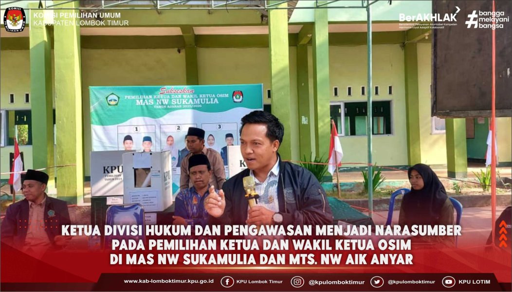 Pembukaan Pemilihan Ketua dan Wakil Ketua OSIM MAS NW Sukamulia dan MTs NW Aik Anyar Meriah, Dihadiri Kadiv Hukwas KPU Lombok Timur.