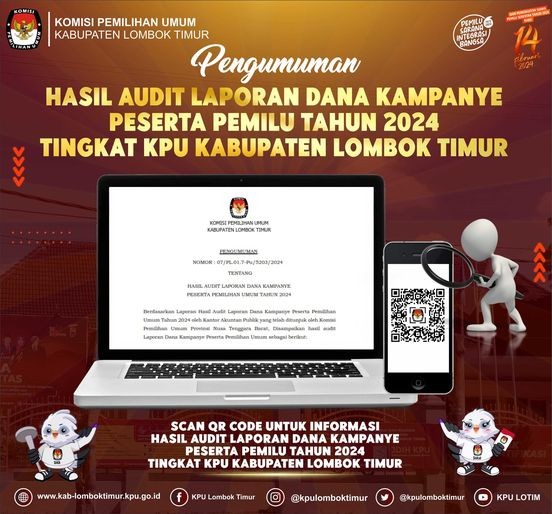 Berikut Pengumuman Hasil Audit Laporan Dana Kampanye Peserta Pemilu Tahun 2024 Tingkat KPU Kabupaten Lombok Timur.