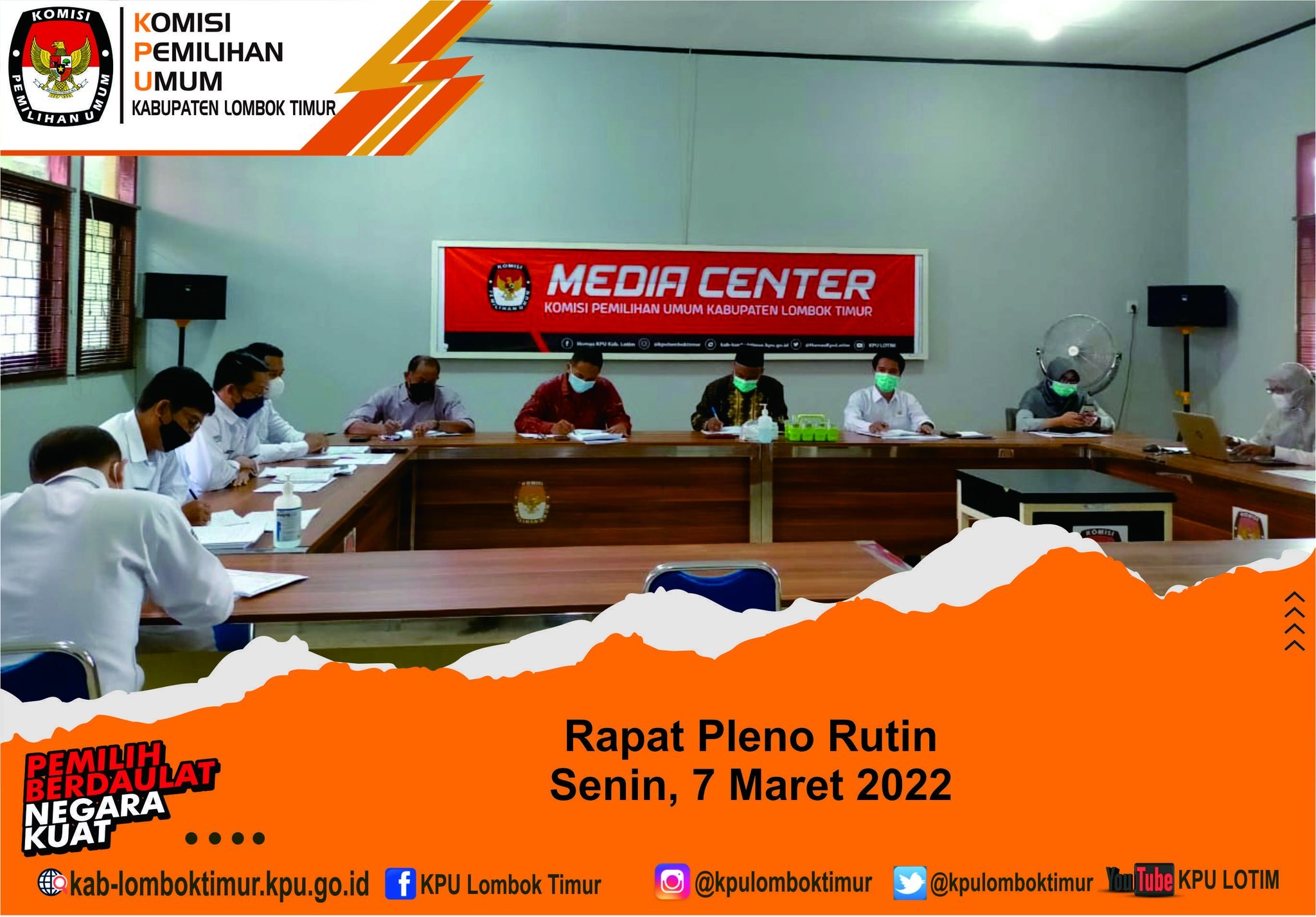 Bertempat di ruang Media Center berlangsung Rapat Rutin KPU Kabupaten Lombok Timur, Pada Senin, 07 Maret 2022.