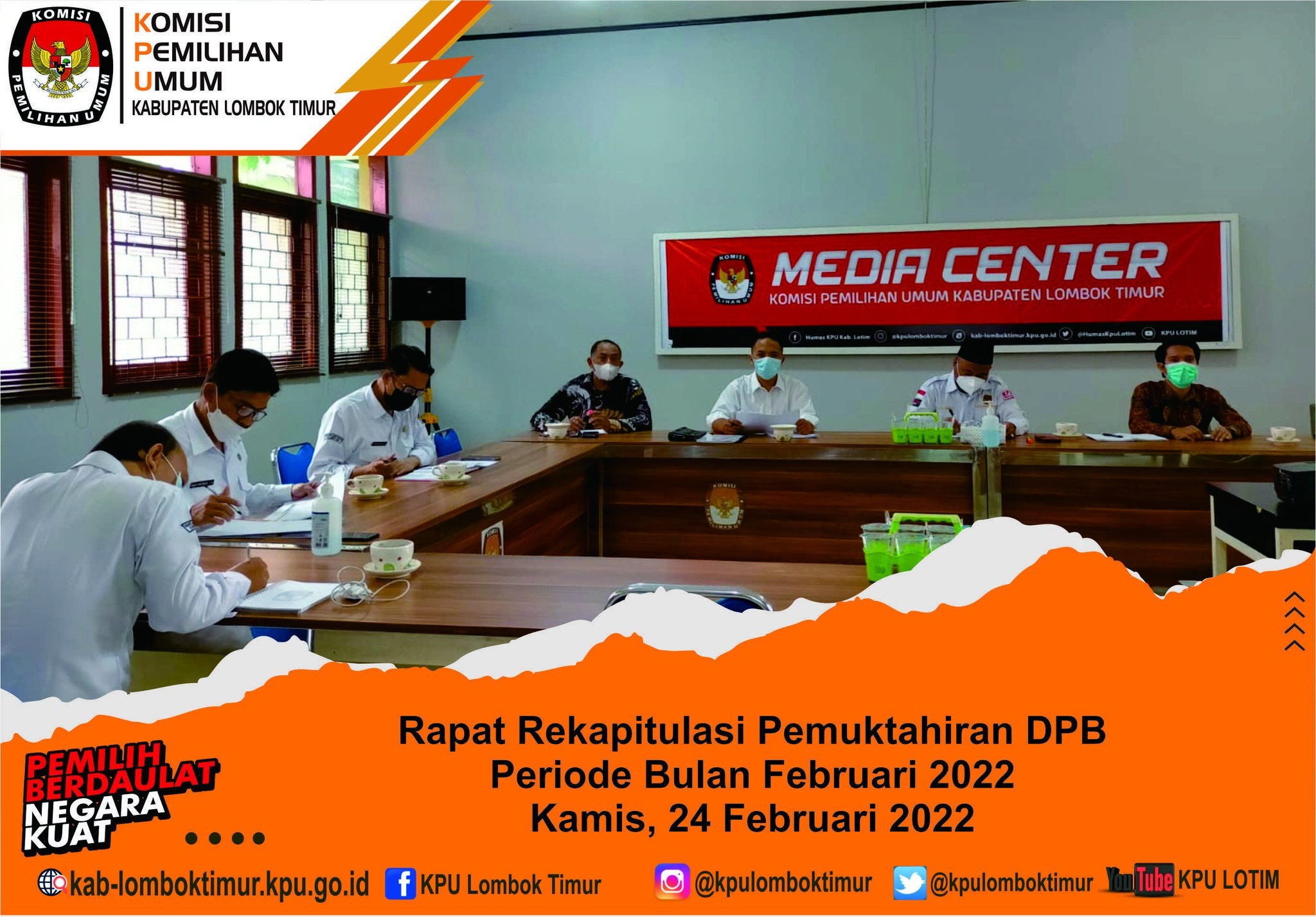Bertempat di Ruang Media Center, KPU Kabupaten Lombok Timur laksanakan Rapat Rekapitulasi Pemutakhiran DPB bulan Februari 2022, Kamis 24/02/2022.