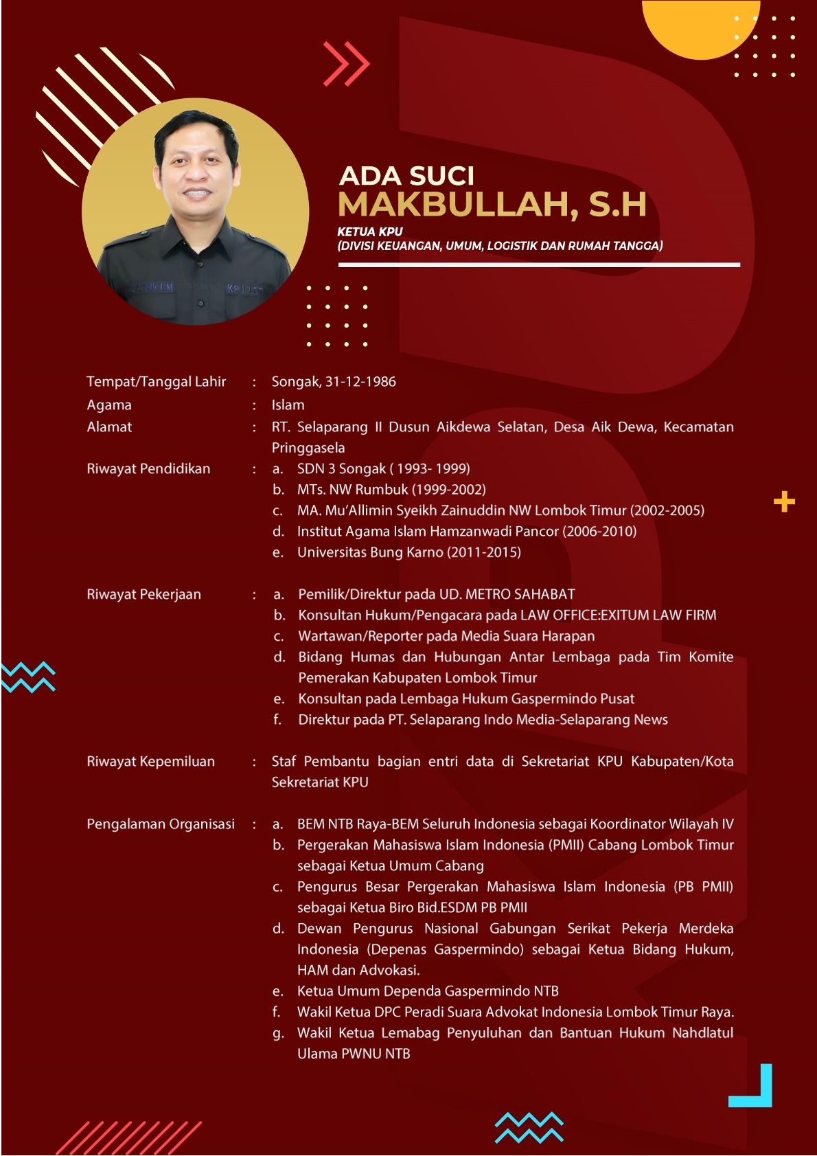Profil Anggota KPU Kabupaten Lombok Timur